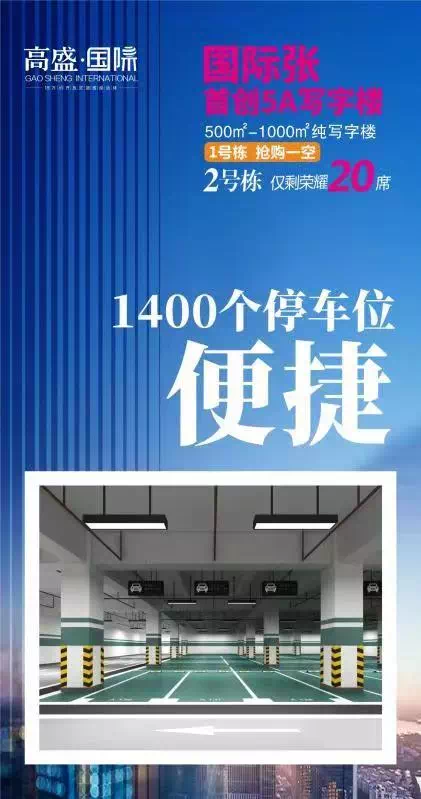 “高盛·国际”作为“国际张”首创5A写字楼正在火爆抢购中,目前,1号栋写字楼已抢购一空,2号栋浓情加推,仅剩20席。