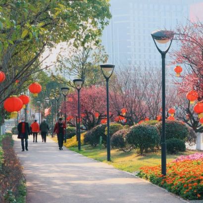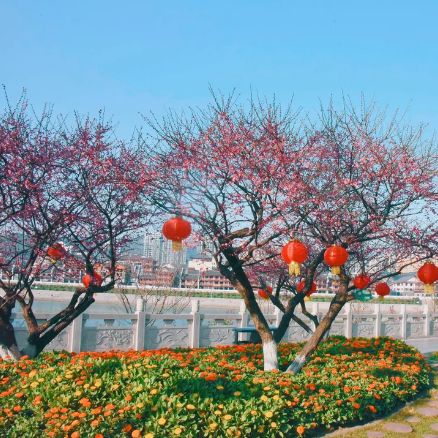 三五好友出门踏青赏花